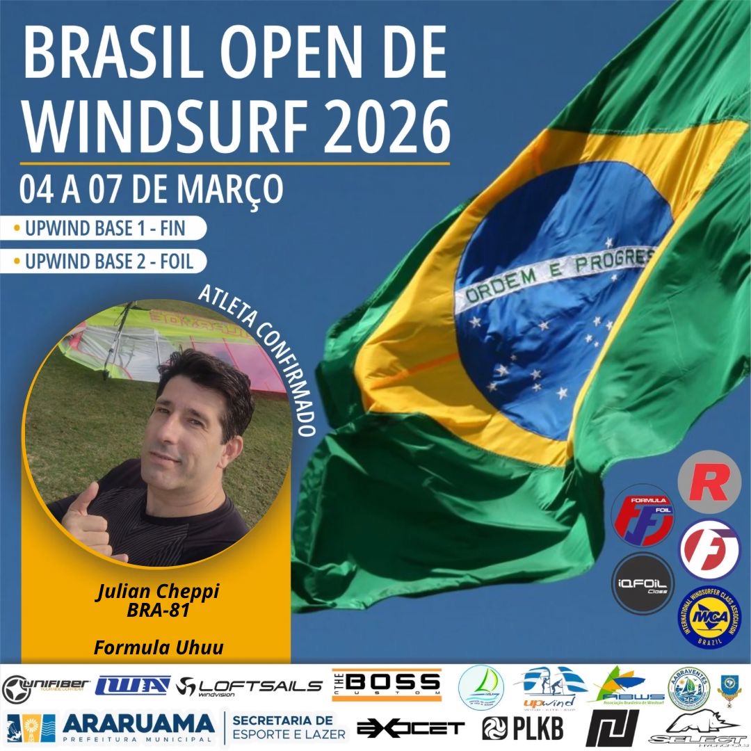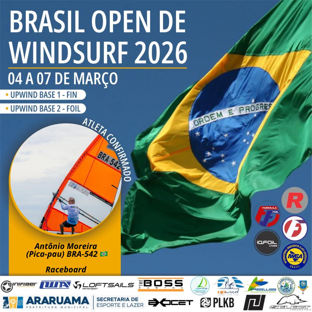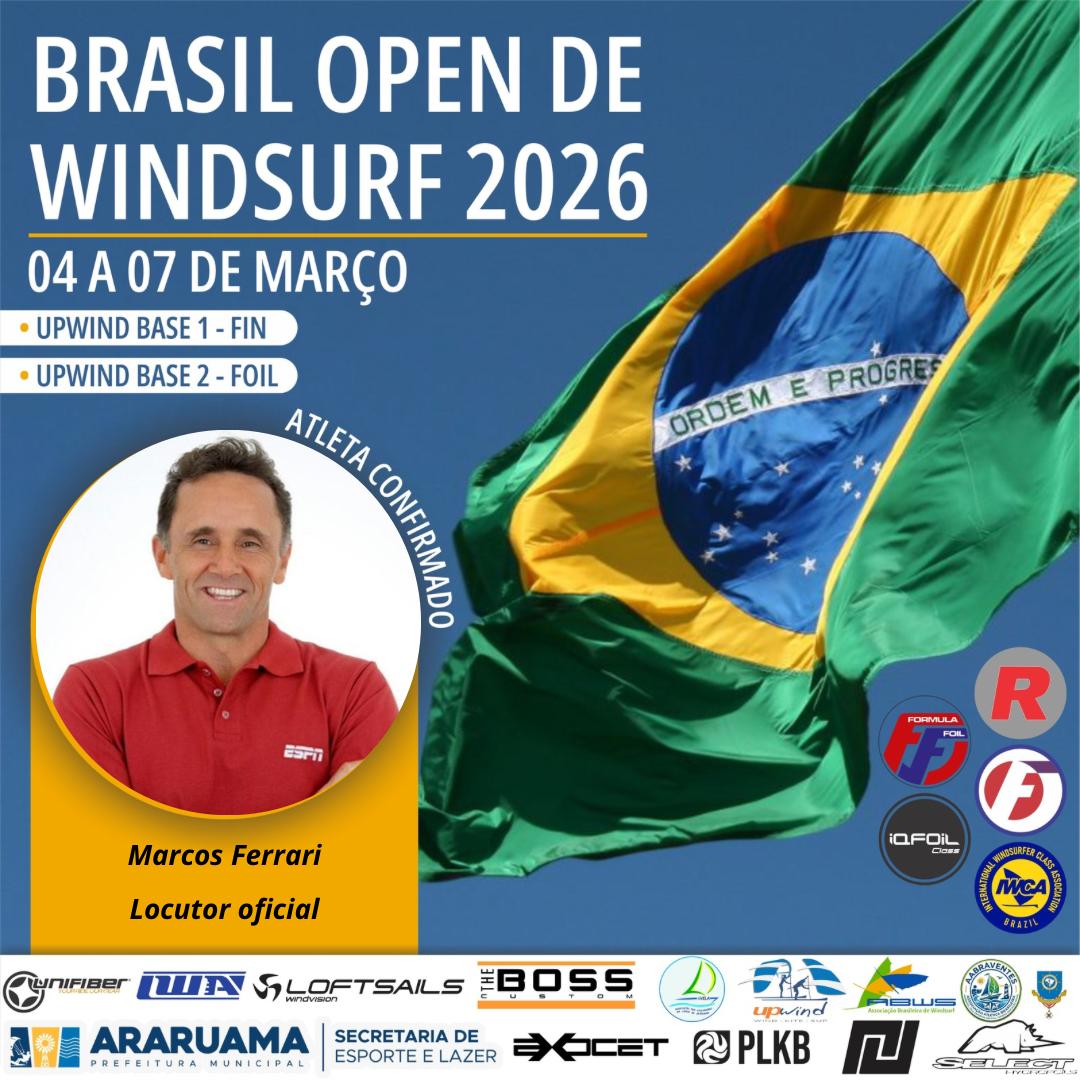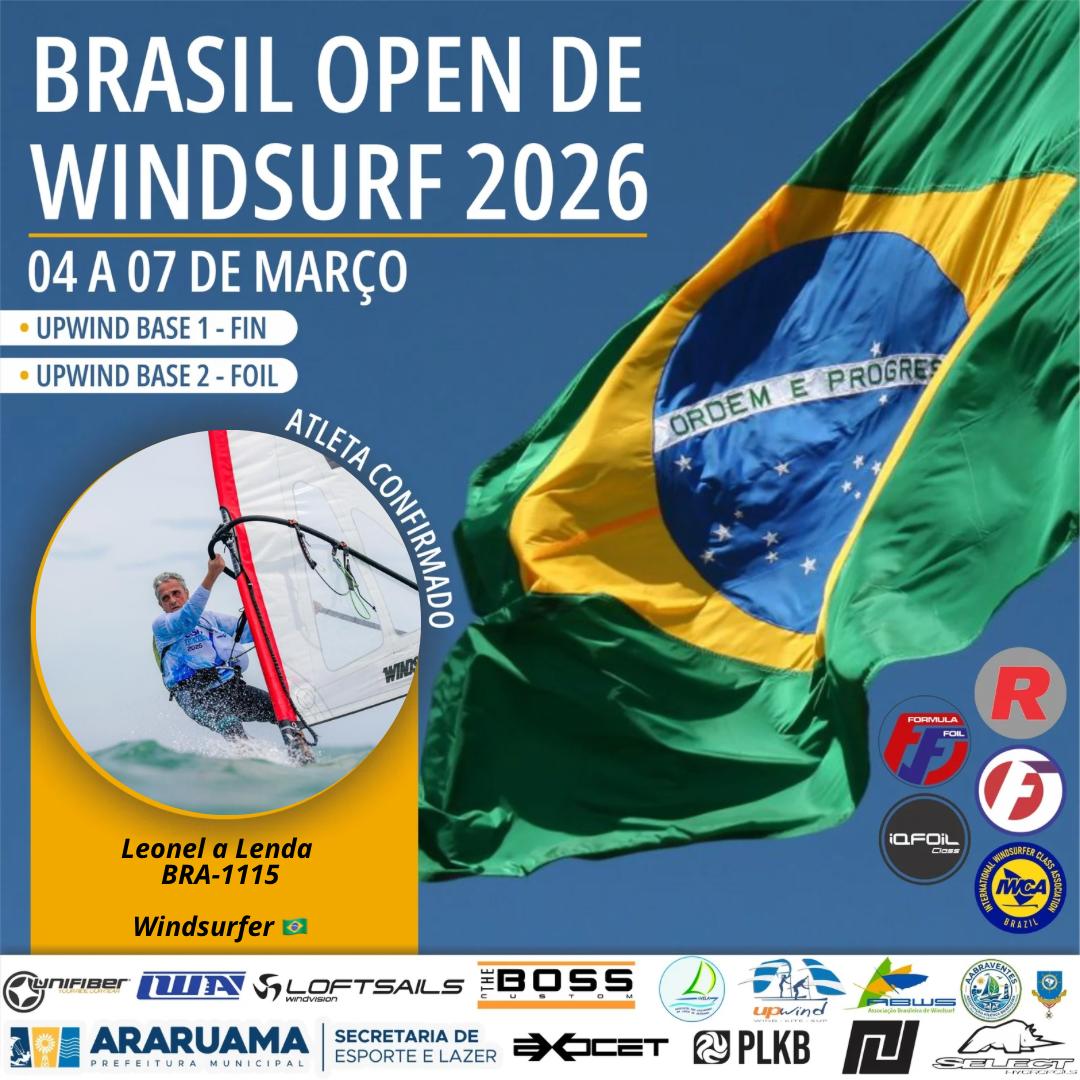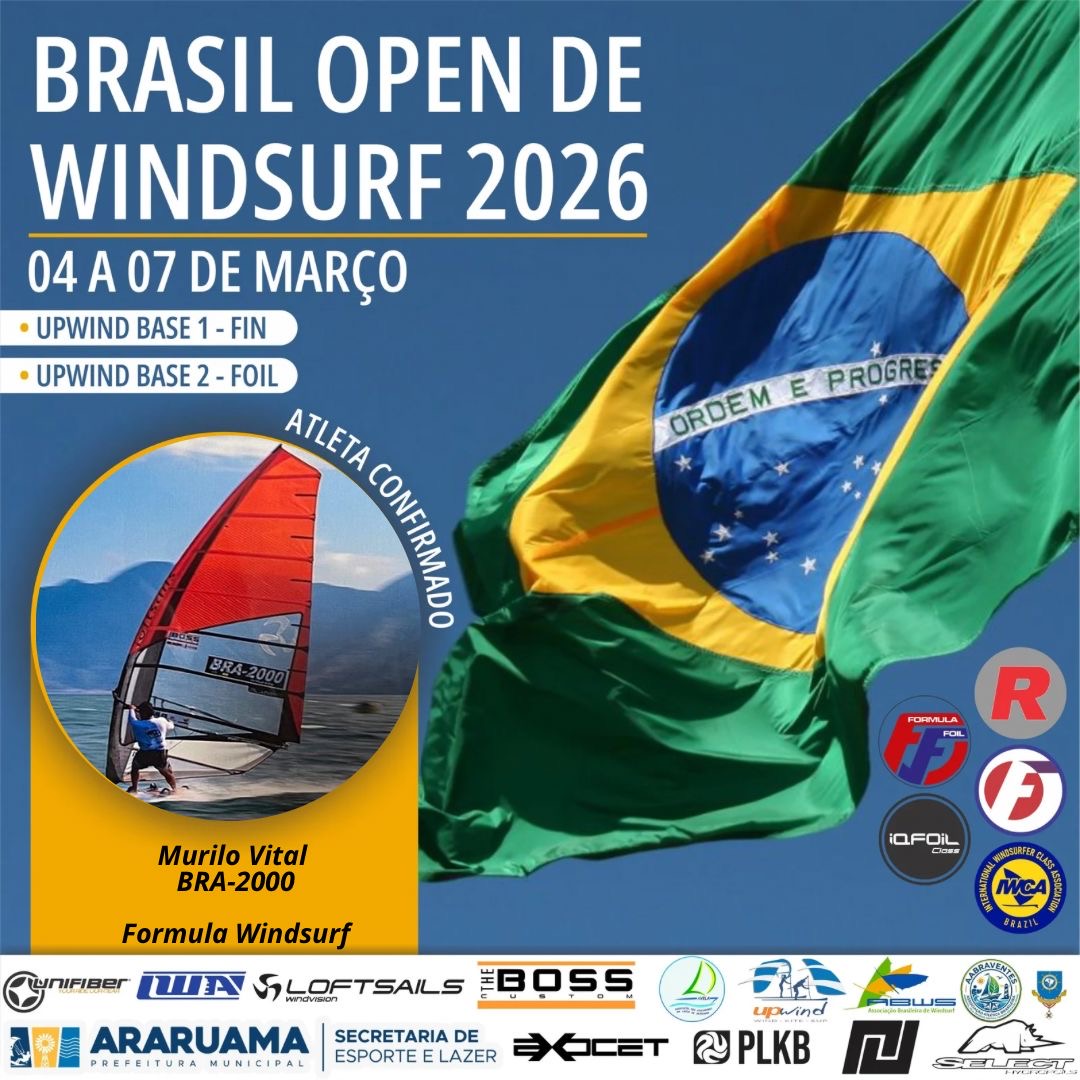 Convidamos todos para o Brasil Open FW Fin e Foil, FE, IQfoil, Raceboard e Windsurfer que será realizado entre os dias 04 a 07 de março de 2026.